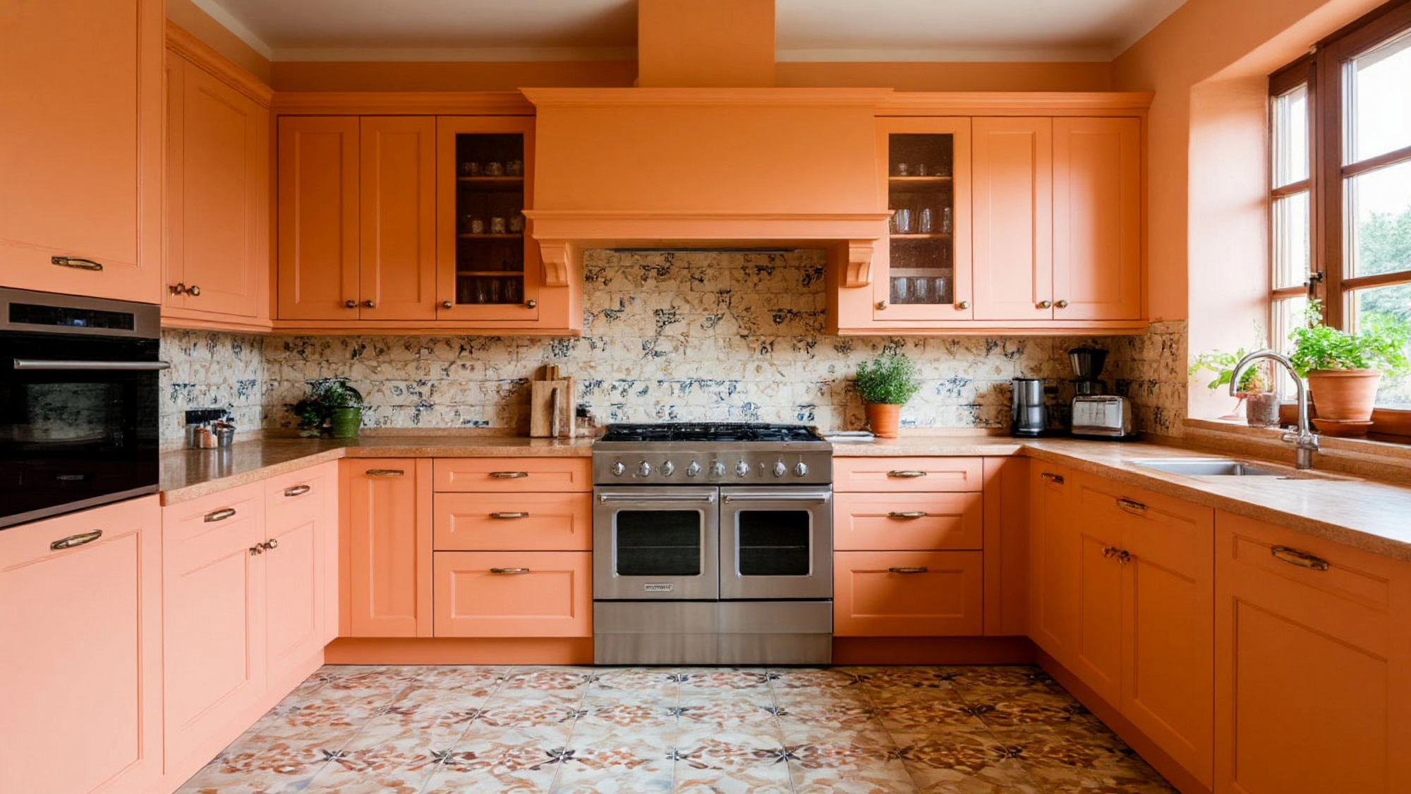 Кухня из эмали — это выбор тех, кто ценит эстетику и практичность одновременно. Поверхность фасадов устойчива к влаге, загрязнениям, солнечному свету, а гладкое покрытие позволяет легко поддерживать идеальную чистоту. При этом эмаль придаёт мебели особую глубину цвета — персиковый в данном случае не просто тёплый оттенок, а целая игра полутонов, где смешиваются песок, роза и сливочный крем. Именно эта многослойность делает кухню "Амалена" живой, как картина, написанная художником на морском побережье.