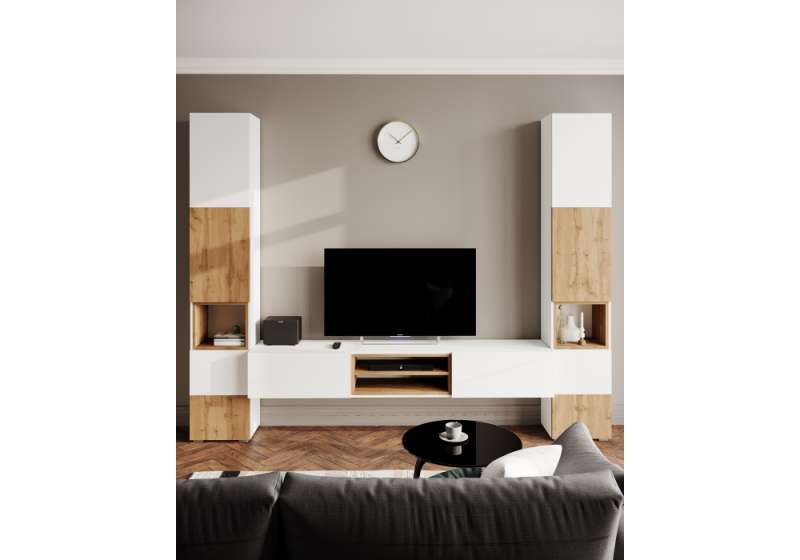 ТВ-тумба Лонгфорд белый / дуб вотан (200x37x30).