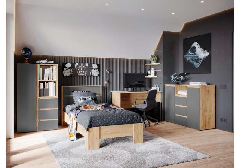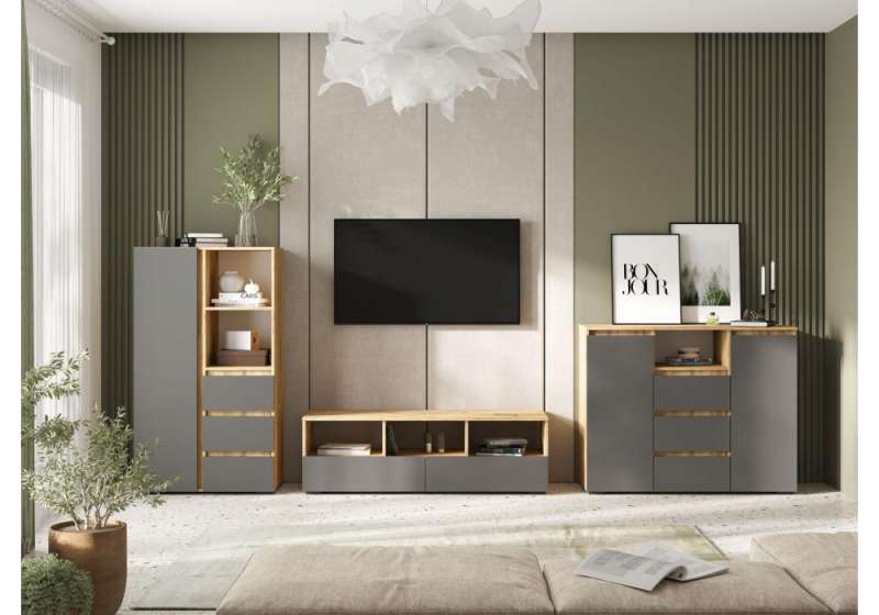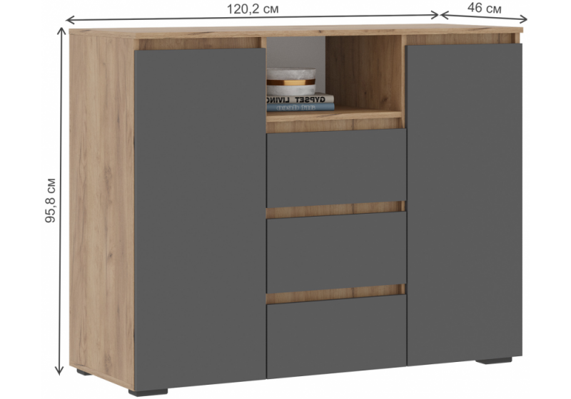 Комод Элла КМ 01 серый графит 0162 / дуб крафт золото (120,2x46x95,8).