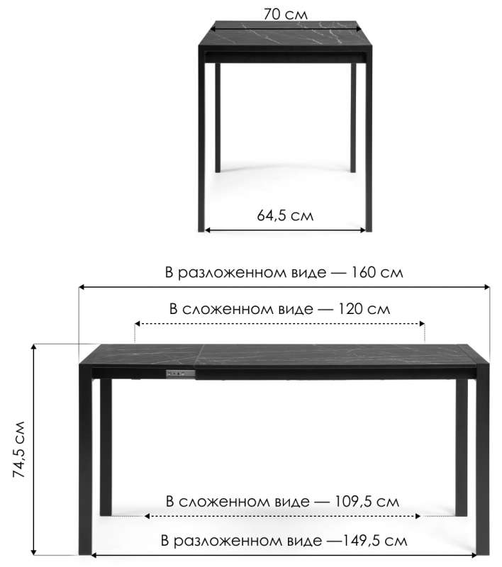 Стол деревянный Центавр 120(160)х70х75 файерстоун / черный матовый (70x75).
